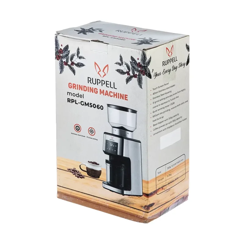 آسیاب قهوه روپل مدل RPL-GM5060 دارای دارای نمایشگر تمام لمسی ال ای دی و 31 درجه جهت آسیاب دانه رست شده برای تهیه قهوه در انواع دستگاه اسپرسوساز خانگی، صنعتی، موکاپات، فرنچپرس و… میباشد که با کالیبراسیون سیستمی و تجربه استفادهی مکرر میتوانید درجه دلخواه خود را بر اساس سلیقه و طعم به دست آورید.